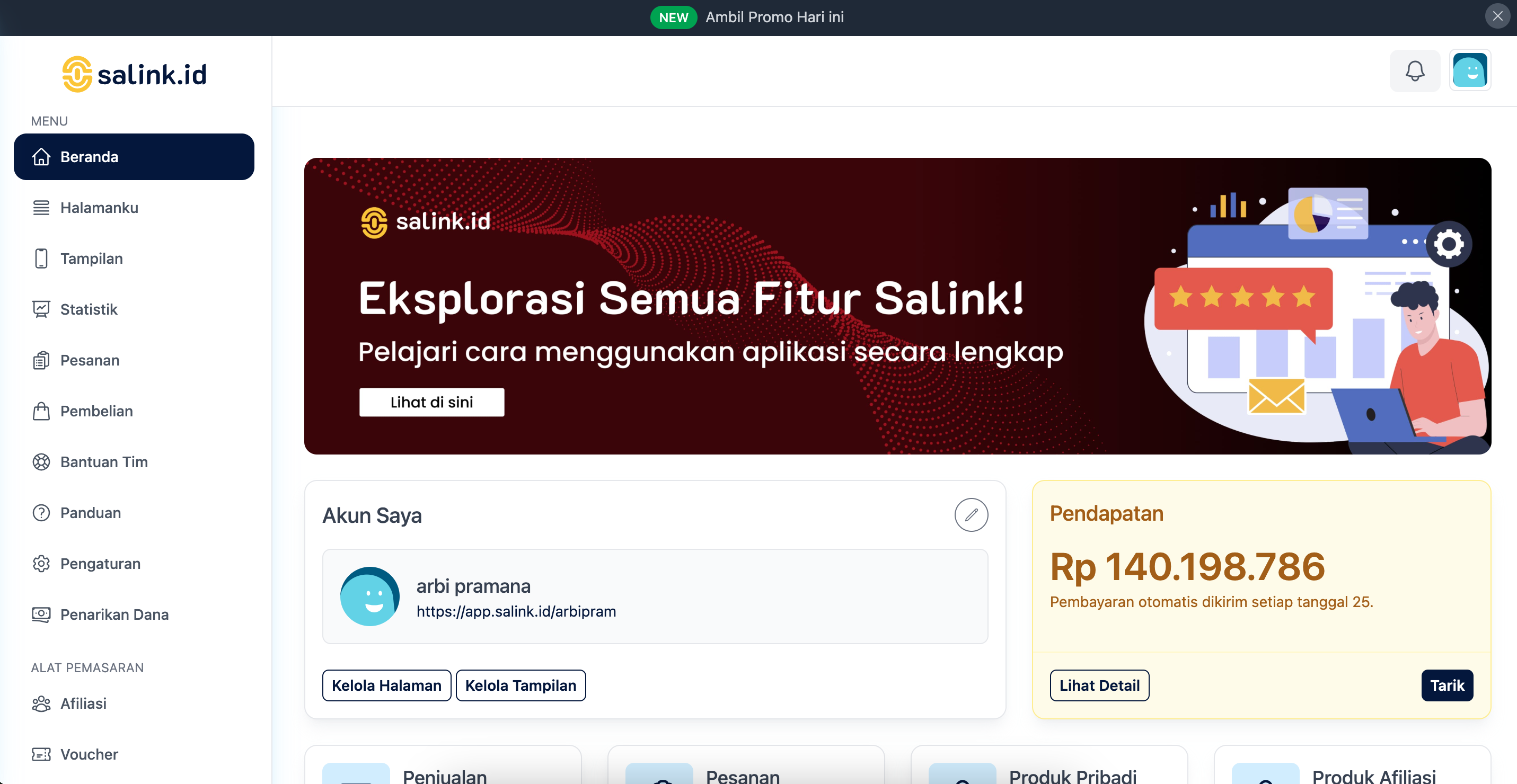 Dapatkan komisi tambahan dengan menjadi Affiliate Produk digital, disediakan produk yang terlaris dan marketing kit siap pakai.